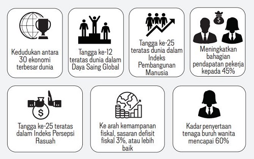Pertamanya, ialah membawa Malaysia ke tahap kedudukan antara 30 ekonomi terbesar di dunia.