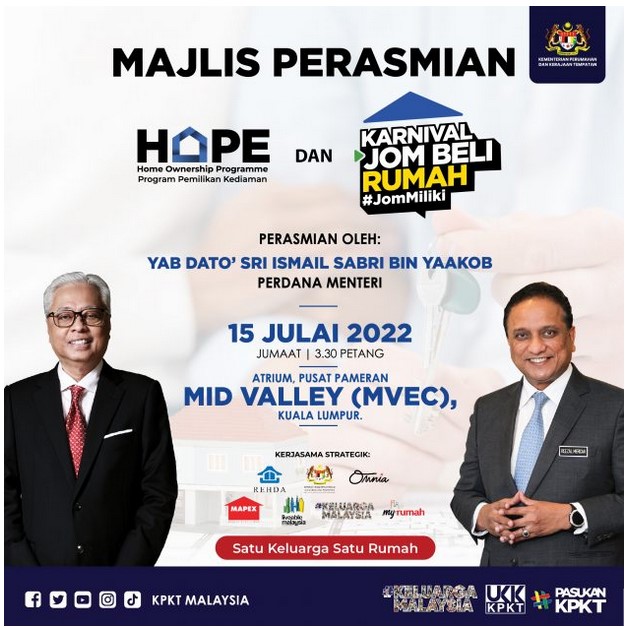 Sempena KJBR 2022 ini juga, turut diadakan Pelancaran Program Pemilikan Rumah (Home Ownership Programme – HOPE) oleh YAB Perdana Menteri pada 15 Julai 2022 (Jumaat), jam 3.30 petang.