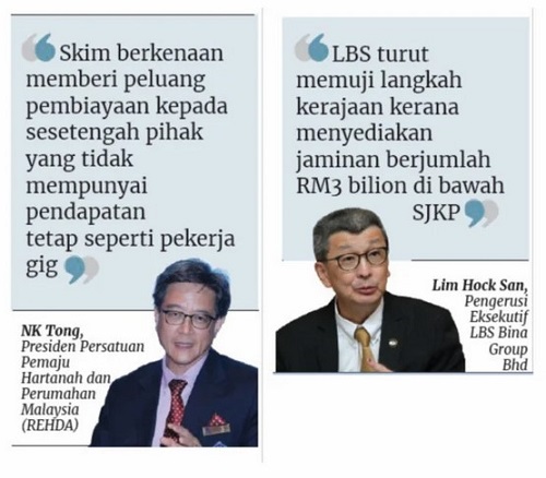 Presiden Persatuan Pemaju Hartanah dan Perumahan Malaysia (REHDA), Datuk NK Tong, berkata skim berkenaan memberi peluang pembiayaan kepada sesetengah pihak yang tidak mempunyai pendapatan tetap seperti pekerja gig.